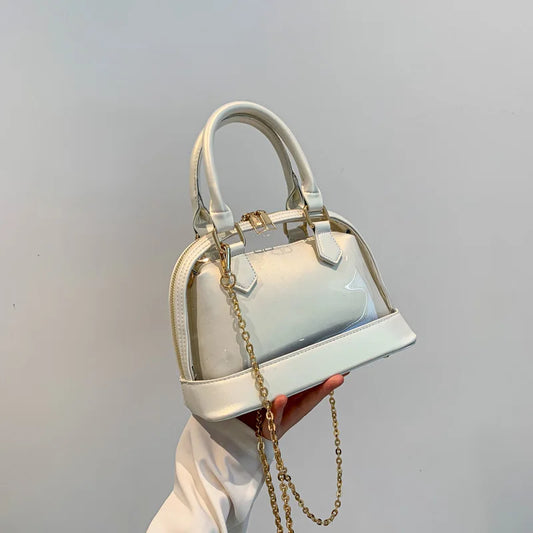 LEFTSIDE 2 Pcs/set Leather Gold Shell Crossbody Bag with Short Handle for Women Small 2023 Trend Chain Handbags Y2k Style